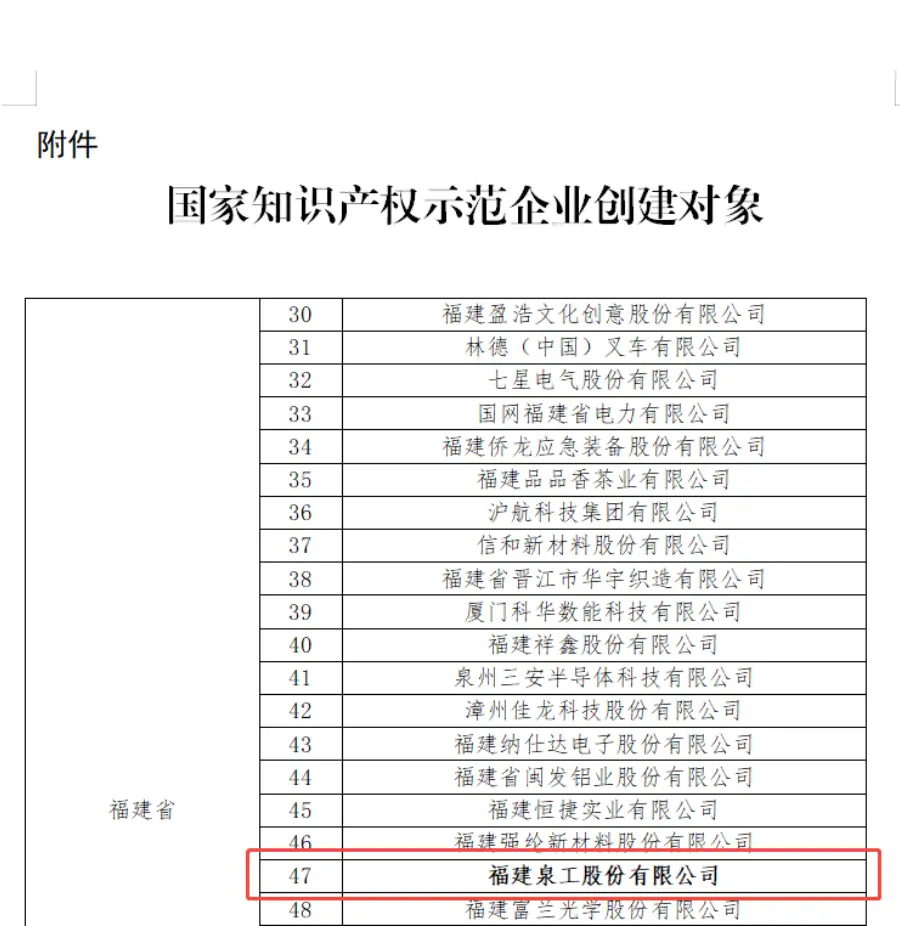 Bubar, Administrasi Kekayaan Intelektual Nasional (CNIPA) ngetokake "Pengumuman Hasil Evaluasi Objek Demonstrasi Konstruksi Negara Kuat Kekayaan Intelektual Nasional."Fujian Quangong Machinery Co., Ltd.kasil dipilih minangka "Obyek Penciptaan Perusahaan Demonstrasi Kekayaan Intelektual Nasional kanggo 2025-2027" adhedhasar kekuwatan lengkap babagan penciptaan, pemanfaatan, perlindungan, lan manajemen kekayaan intelektual. Pilihan sing sukses iki nuduhake pangenalan tingkat nasional sing berwibawa saka upaya Quangong Machinery Co., Ltd. kanggo promosi pangembangan properti intelektual sing berkualitas lan ngladeni strategi nasional kanggo mbangun negara properti intelektual sing kuwat.