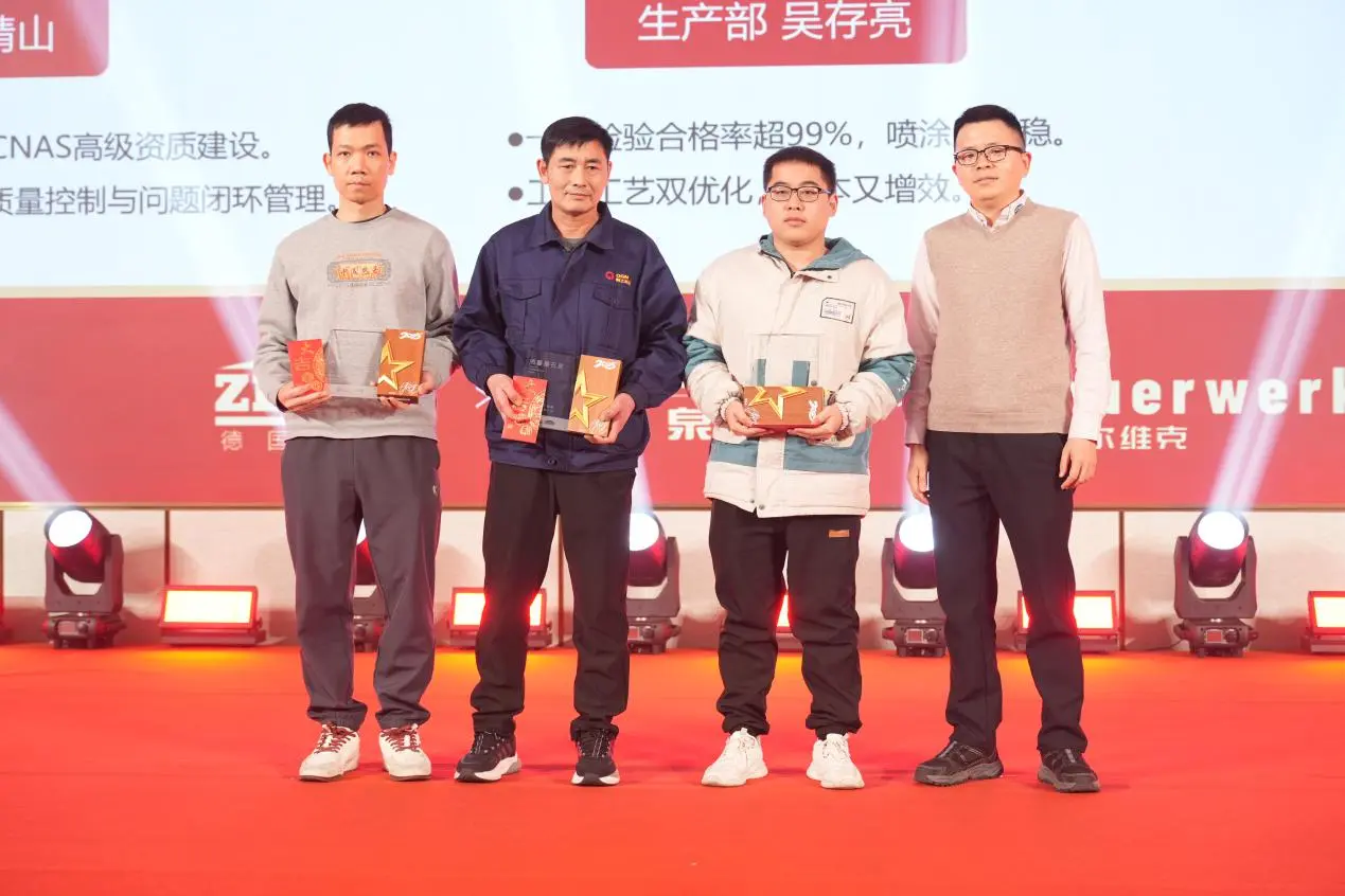 Sajrone upacara penghargaan taunan, perusahaan ngakoni karyawan anyar sing pinunjul, elit pemasaran, landasan kualitas, inovator teknologi, proyek sing luar biasa, karyawan sing luar biasa, manajer sing luar biasa, lan tim sing luar biasa. Fu Caihong saka Departemen Keuangan, minangka wakil saka karyawan sing pinunjul, ngomong kanthi basa sing tulus lan prasaja, nuduhake prasetya kanggo profesionalisme lan tanggung jawab ing peran finansial, ngucapake matur nuwun kanggo platform perusahaan, bimbingan kepemimpinan, lan dhukungan rekan kerja, kanthi jelas nuduhake semangat profesional sing ketat lan tanggung jawab karyawan Quangong sing kerja bareng.