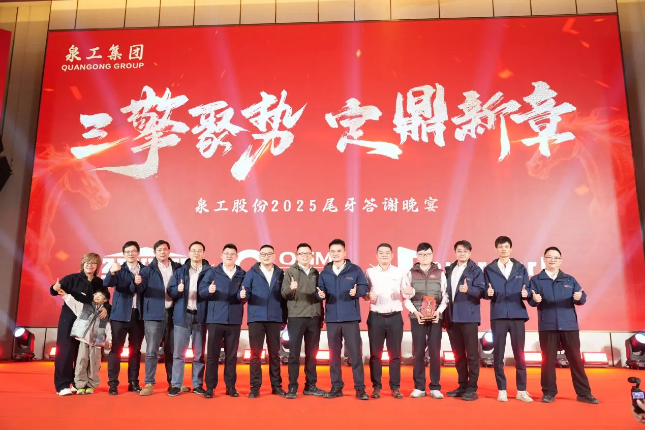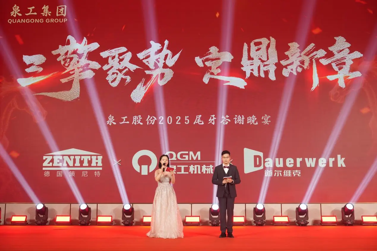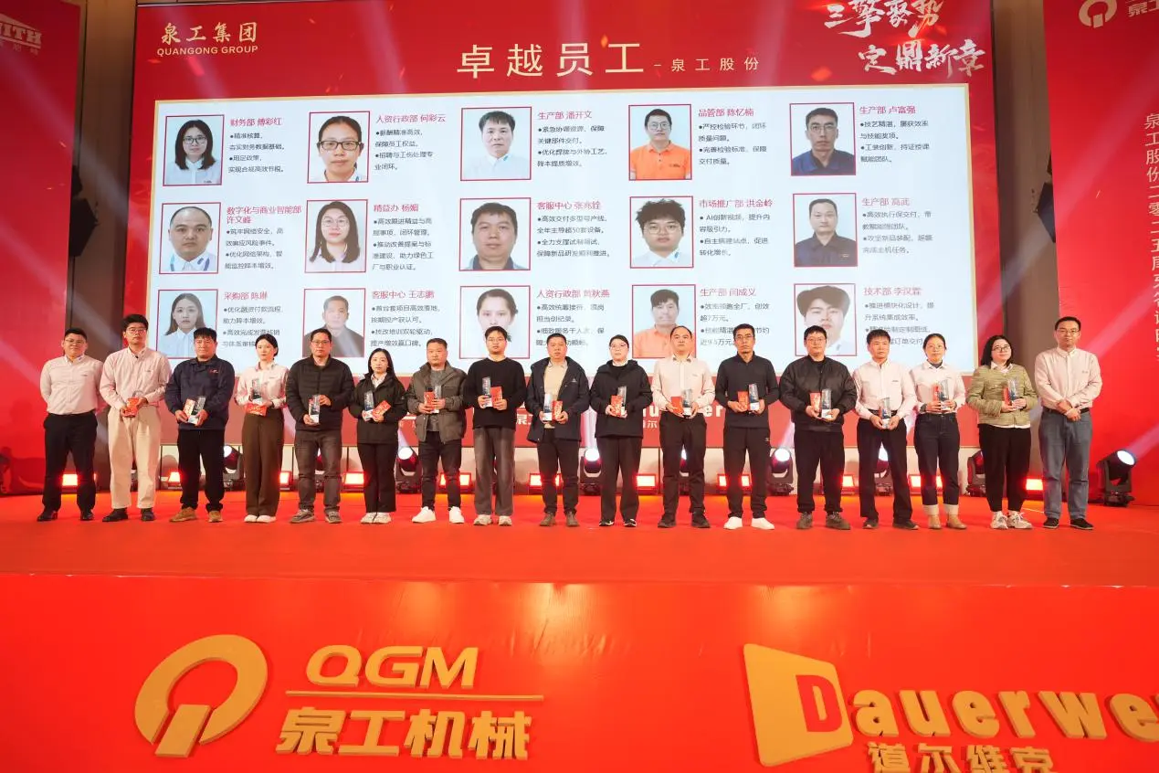 Ing wayah sore tanggal 3 Februari,Fujian Quangong Machinery Co., Ltd.nganakake Ringkesan Tahunan lan Upacara Anugrah 2025 lan Perayaan Taun Anyar ing Quanzhou Donghai Honor Hotel, kanthi tema "Tiga Mesin Konvergen, Nyetel Bab Anyar." Pimpinan perusahaan, wakil pelanggan utama, kabeh karyawan, lan kulawargane padha kumpul kanggo mriksa perjalanan kerja keras, nuduhake prestasi pangembangan, lan ngarepake masa depan sing cerah.