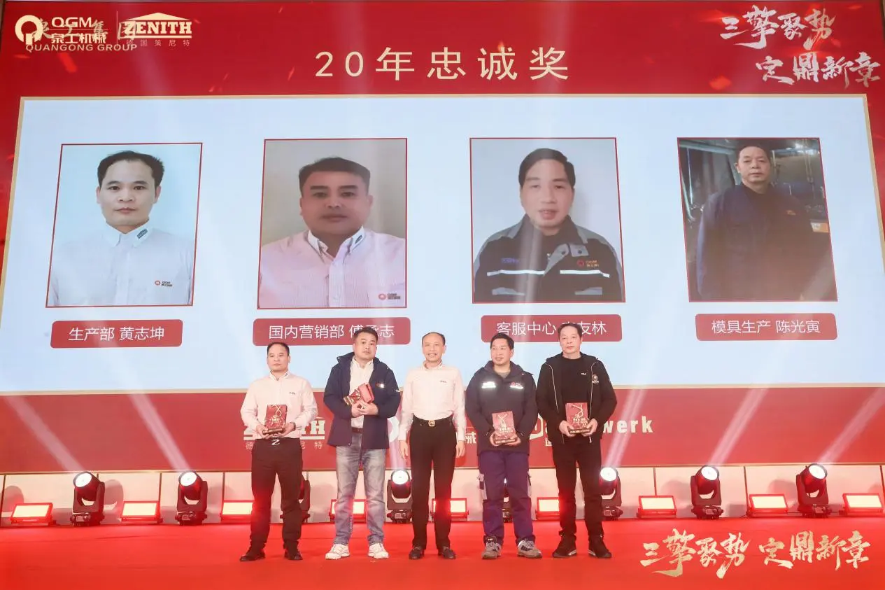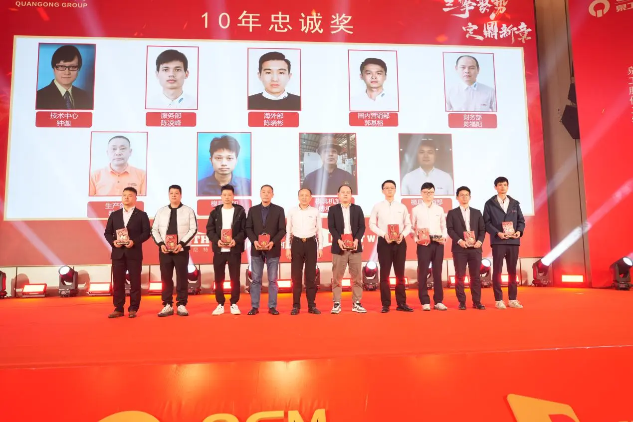 Sajrone rapat taunan, upacara penghargaan gedhe uga dianakake kanggo penghargaan kesetiaan 10 taun, 20 taun, lan 30 taun. Klompok karyawan sing wis mlaku bebarengan karo perusahaan lan thukul bebarengan munggah ing tataran, kanthi nuduhake pondasi padhet saka Quangong Machinery Co., Ltd. kang pembangunan anteng lan budaya perusahaan awet terus.